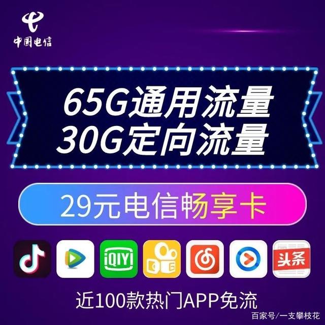 中国电信星卡29元套餐大流量版!29元月享65G通用+30G定向+300分钟通话!