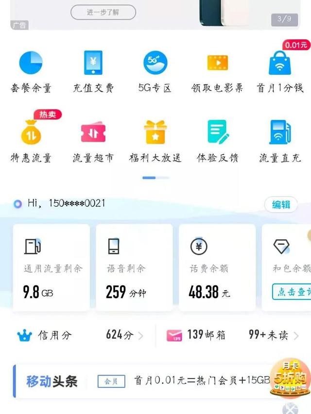 网友吐槽:移动运营商打电话给说之前的套餐不能续约,要加3块钱改换为5G套餐,这个月提醒我套餐已更改但还是显示的4g。