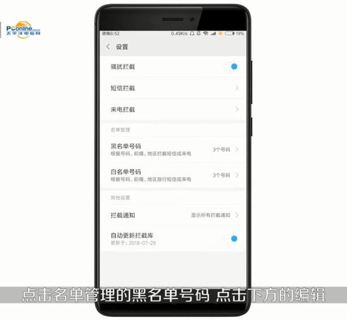 3、点击【骚扰拦截】;